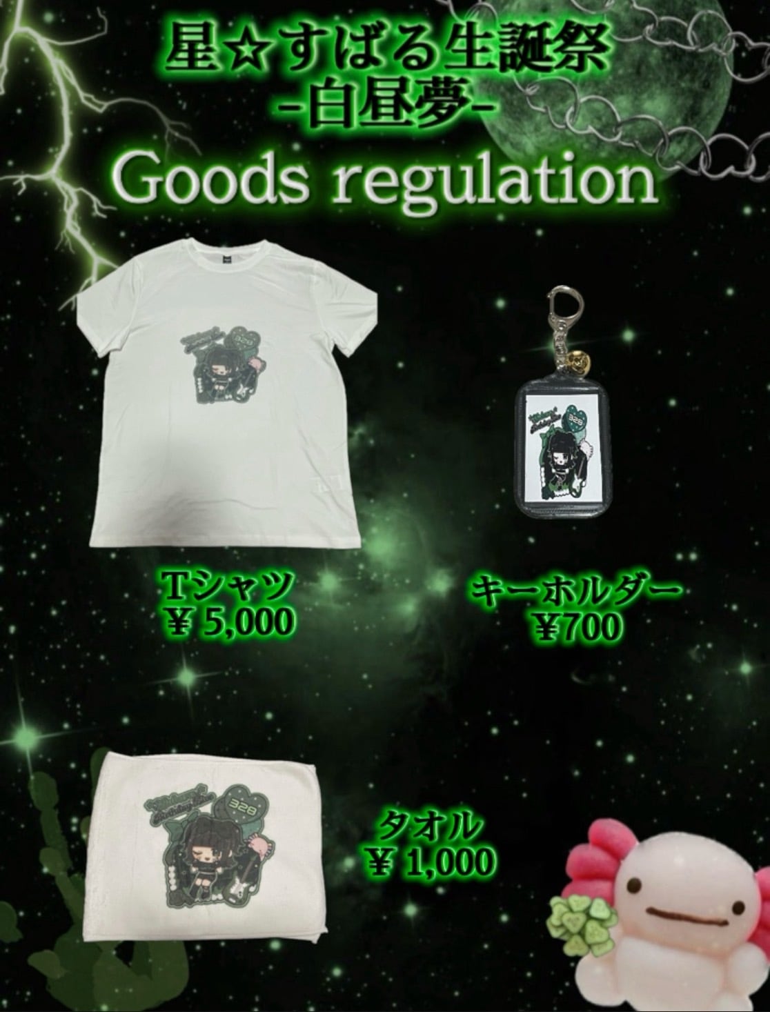 生誕Tシャツ、キーホルダー、タオルのラインナップです!